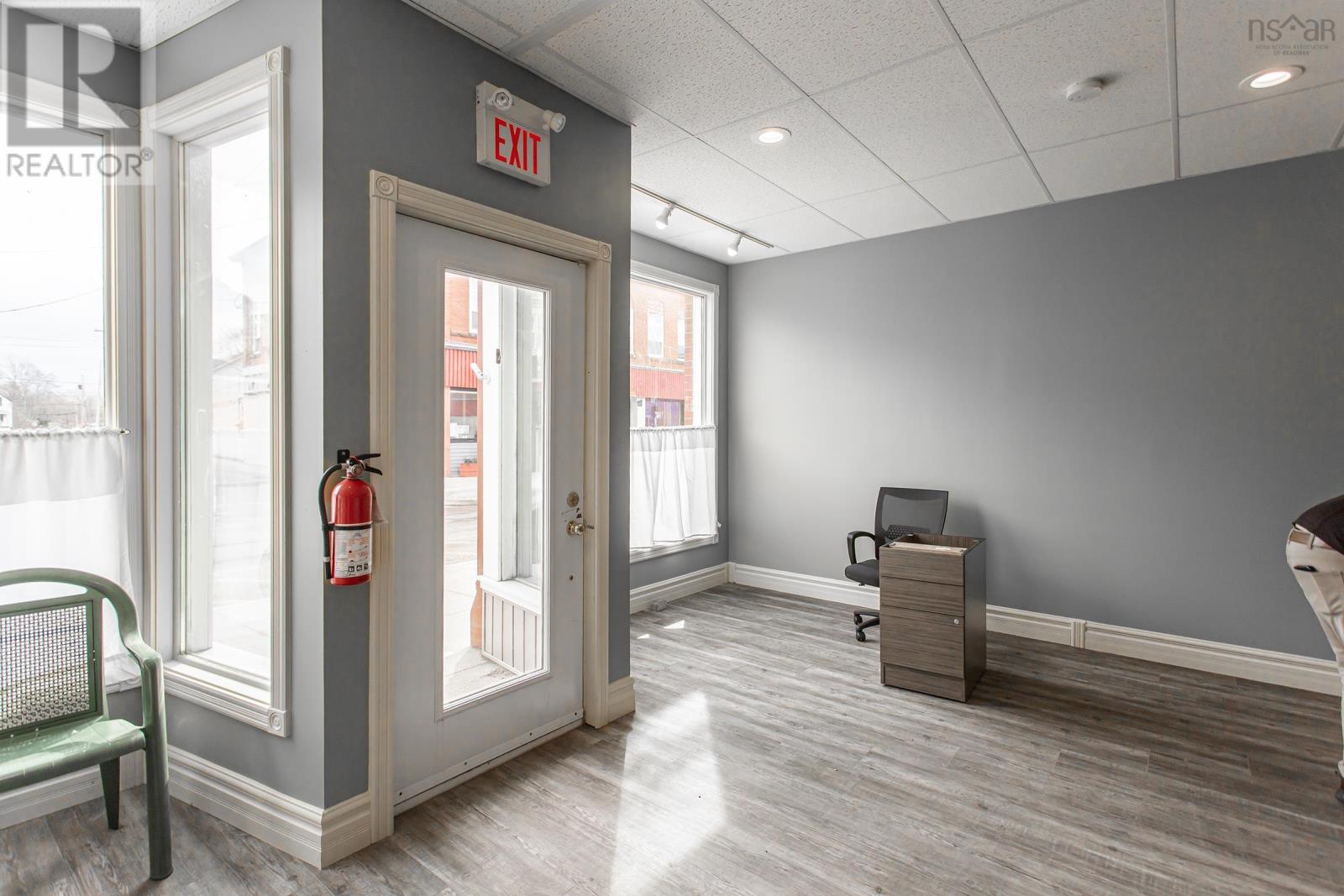 The historic Shafner Building (1901) offers a prime investment opportunity in downtown Bridgetown with both commercial and residential income potential. Exceptional curb appeal in a high-traffic location, this would make a perfect location for many different businesses. The property features over 2000 sq ft of freshly renovated main floor retail space, complete with staff room, washroom, and storage area. Currently leased to Elections Canada (vacating Summer 2025), the versatile space suits various business ventures. Four apartments on the upper floor generate steady monthly income of $3,450, with room for improvement as tenants vacate. The building has undergone extensive restoration, gutted to exterior walls and completely rebuilt with all new systems and energy-efficient heat pumps. Half the roof is new with remaining materials included at closing. Some exterior brickwork requires correction (estimated at $20K, reflected in asking price). Additional features include a 16' x 22' storage building, on-site parking, and an adjoining public parking lot. This landmark property combines Bridgetown history with immediate income and minimal maintenance concerns. (id:63340)