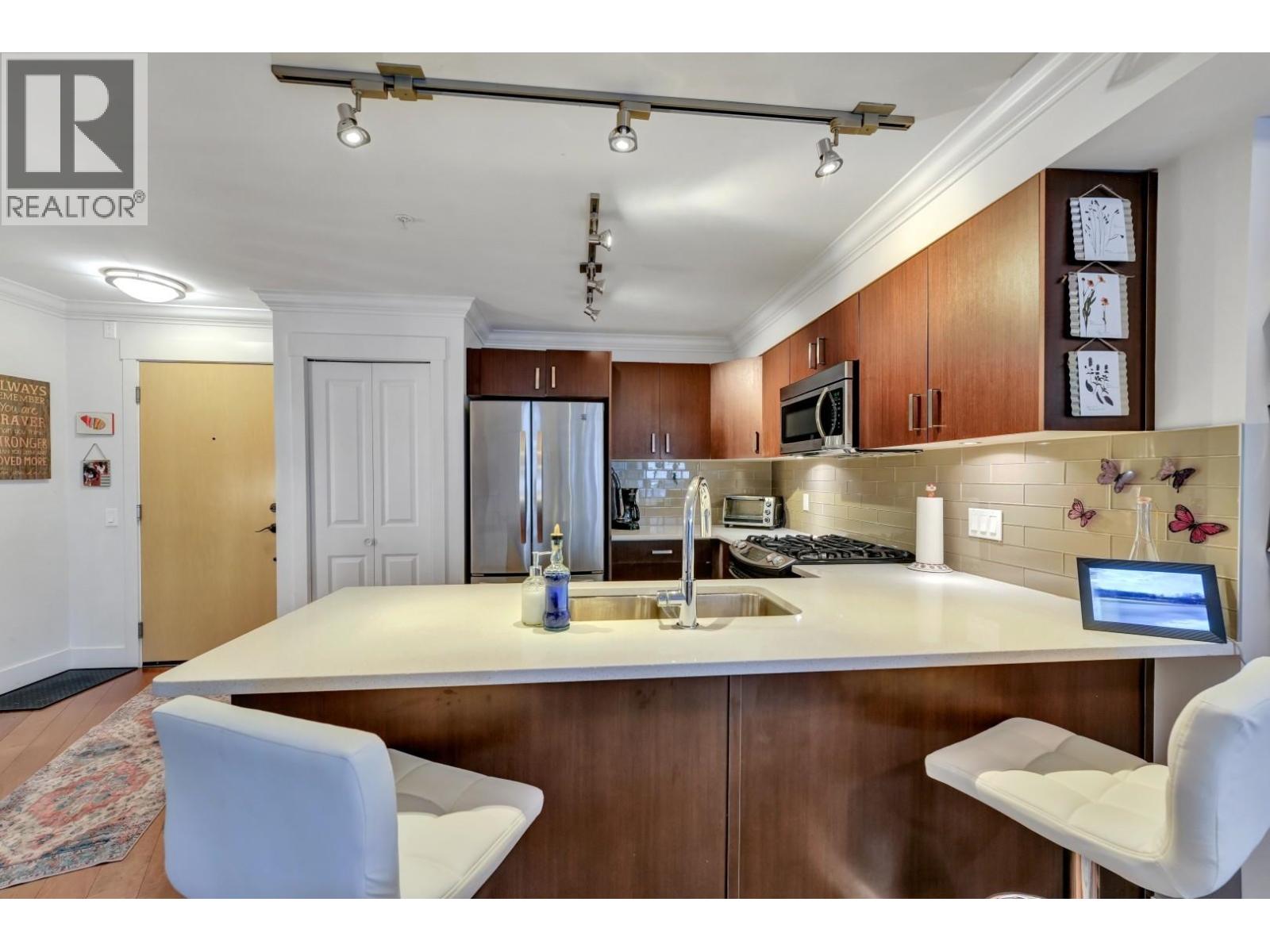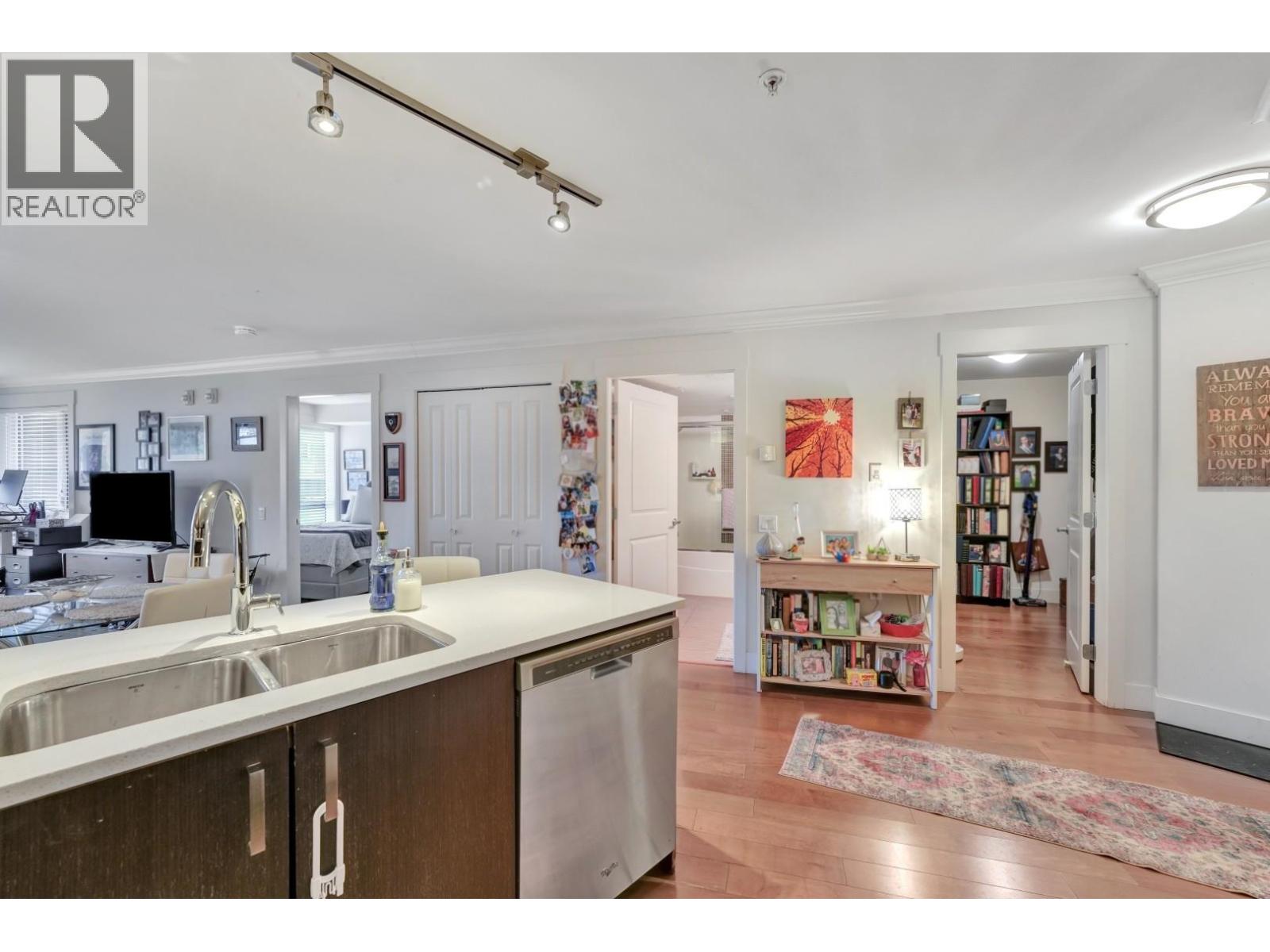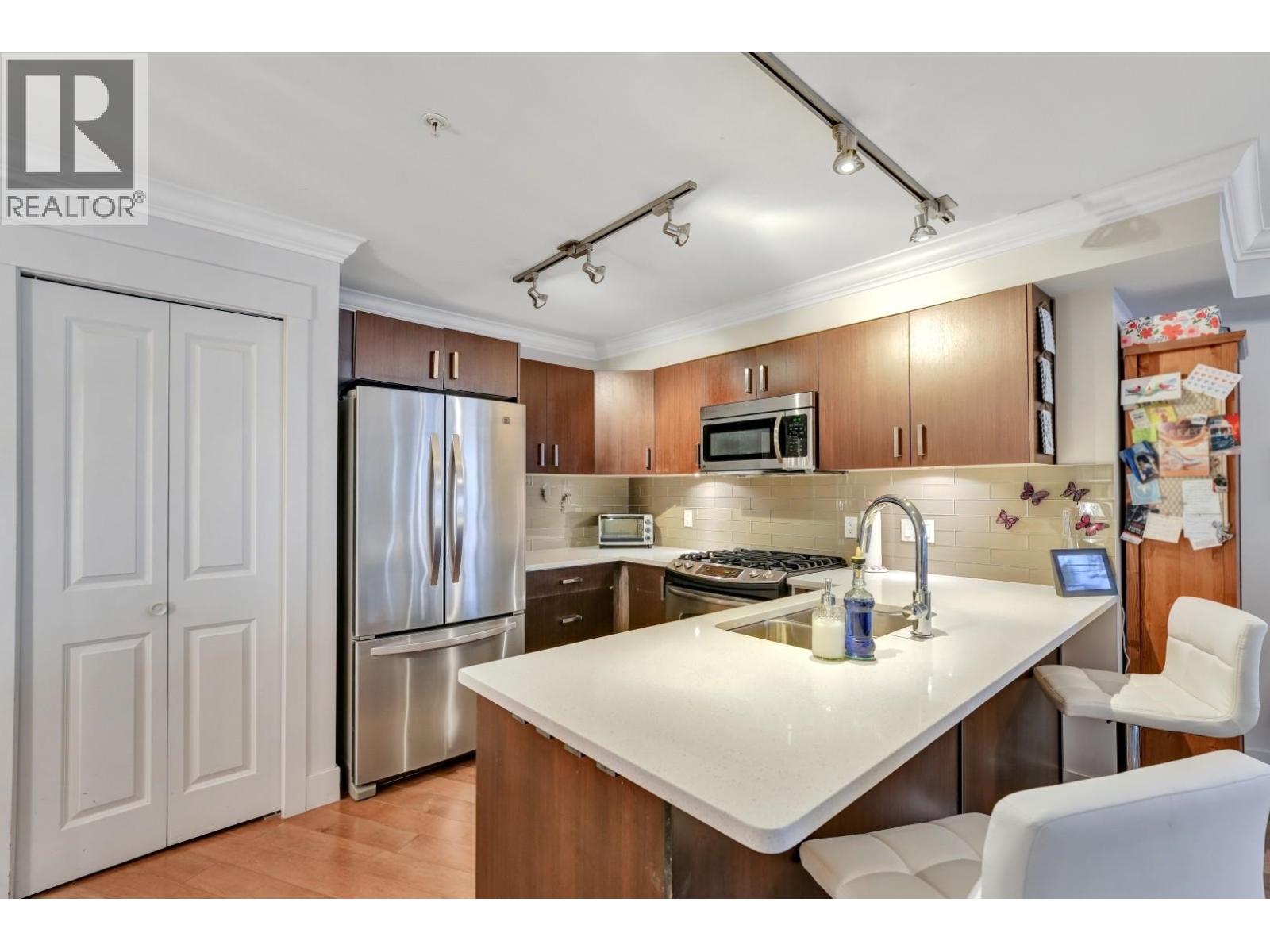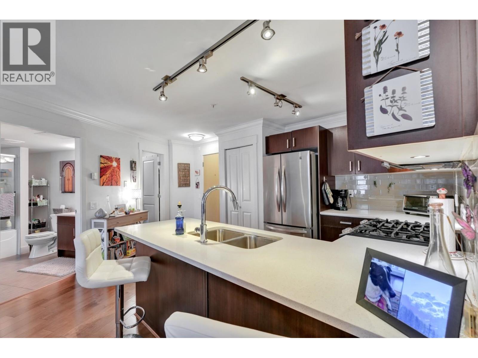 A UNIQUE OPPORTUNITY TO OWN BOTH A RESIDENTIAL UNIT AND COMMERCIAL UNIT, EACH INDEPENDENT FROM ANOTHER. On the ground level, you have a 365 square foot retail space, and on the 2nd floor you have a 802 square foot residential One bedroom plus Den. The Vue features attention to detail with premium engineered hardwood flooring throughout, enjoy a modern kitchen with full size stainless steel appliances, custom wood veneer cabinets, and a gas cooktop, plus a custom walk-in closet included in the bedroom. Capilano Mall and transit at your doorstep. HEAT & HOT WATER INCLUDED IN THE MAINTENANCE FEES! 1 parking, 1 storage, and extra parking stall is available for purchase. Currently rented for $4,666 per month. (id:63340)