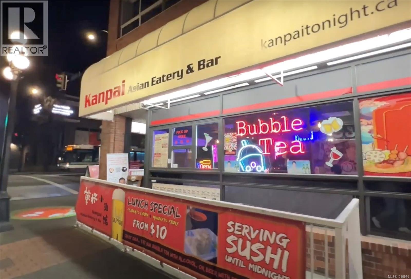 Asian restaurant and bar in a prime downtown location, just steps from the library, offices, the Royal Theatre, and major tourist attractions. Excellent rent package at $4,000/month (includes Hydro, Water, and GST). Significant growth potential. Includes one designated parking space, with plenty of street parking available. Come make it your DESTINED business! Please do not approach the staff or the business owner regarding the sale.* (id:63340)