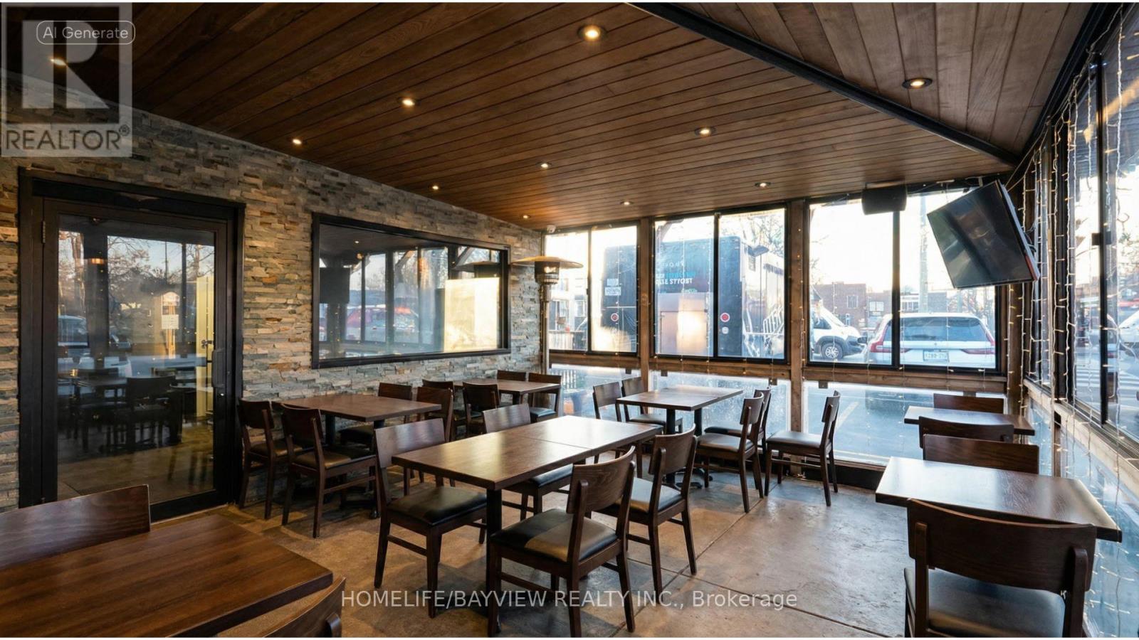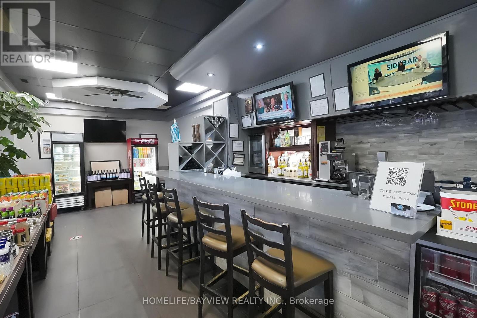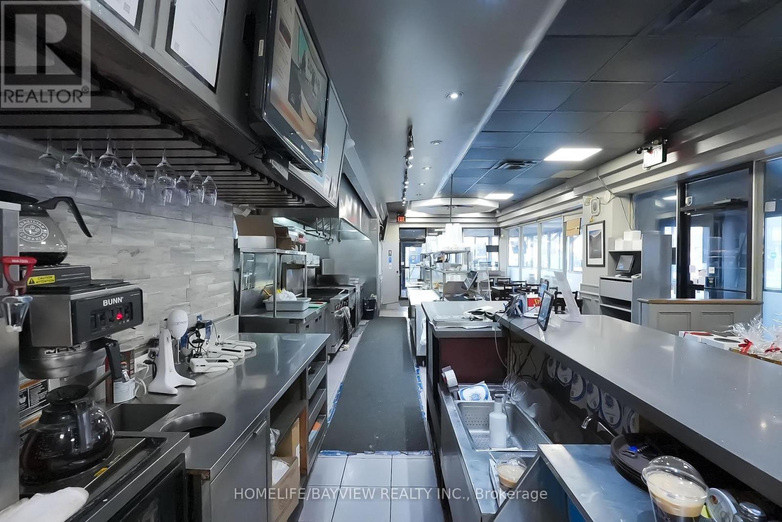 Excellent opportunity to purchase an established, free-standing restaurant located on a prime intersection in East York. Fully-equipped restaurant with L.L.B.O. for 48 seats + 46 seat enclosed patio, complete grill kitchen with 3 exhaust hoods all built to code (1-20 ft, 1-6ft, & 1 5 ft hood), steam tables, counter fridges, 2 walk-in coolers, 1 walk-in freezer, glass washer, & dishwasher. All equipment owned. Includes separate BBQ cooking room for large rotisserie spit for grilling all kinds of meats. 13 parking spaces for customers. Lease 3 years + 5 + 5 + 5 years options to renew. Rent $15,100/Month includes T.M.I. & H.S.T. Note: Staff willing to stay. Brand name and goodwill NOT included. If buyer wants brand name, then price is $1.4M and includes catering unit next door for storage & prep, food truck, & delivery van - mostly take-out & catering business. Please do not talk to staff/customers - please visit with appointment only. (id:63340)
