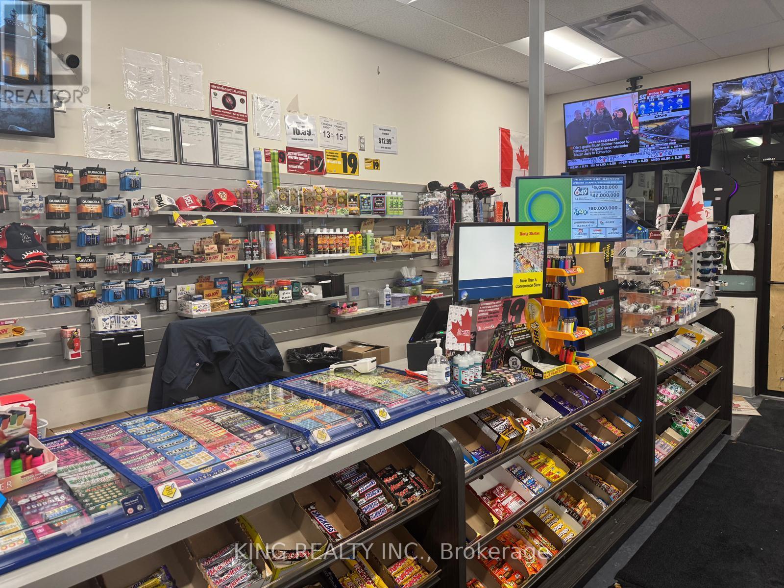 Location Location, Turnkey ready convenience store for sale in Woodstock, in a high demand area, This Corner unit, offers approximately 1900 sqft. Operating space with excellent visibility, Strong exposure on Dundas St, Surrounded by dense residential and commercial. Monthly Revenue approximately 42k to 45k, additional monthly commission around $3000 to $4000 from lottery sales. Currently there is no Western Union, Money Transfer. Lease 5 plus 5, monthly Rent of $7900 include tmi & Hst. Buyer can extend hours to increase sales, currently opening hours from 8AM to 8PM. Significant growth potential, add Hot food, add Soda fountain Machines, Slushy, add amazon locker, UPS/FEDEX Services. (id:63340)